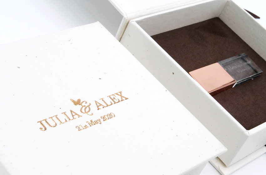 Choose from 9 different foil colours for box branding. Silver, Gold and Rose Gold are the most popular.