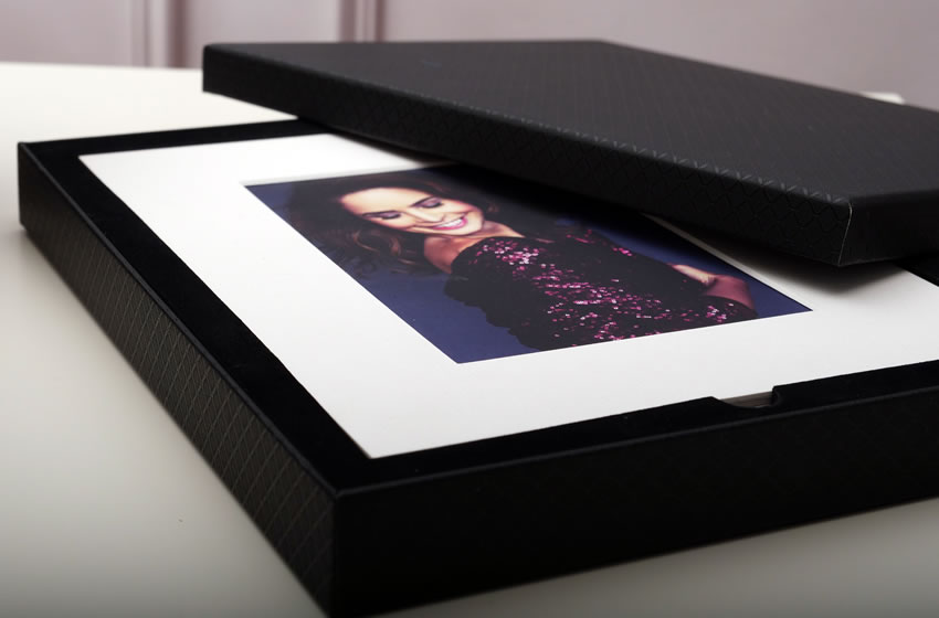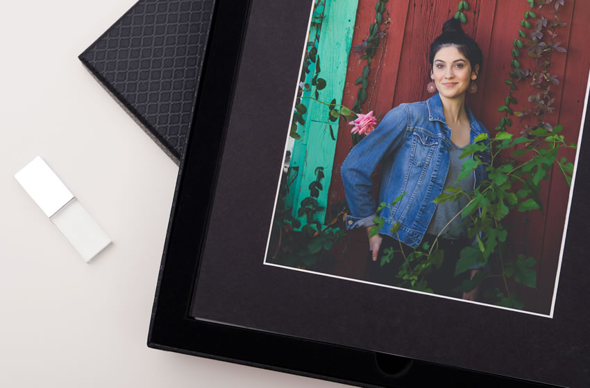 The box can be purchased with or without mats. It holds up to size 10 x 8 prints without mats.