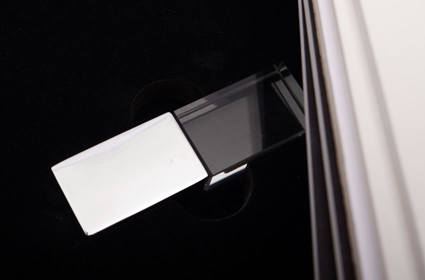 The Diamond folio box can be purchased with or without a USB. The Crystal USB is the only style available with this folio box.