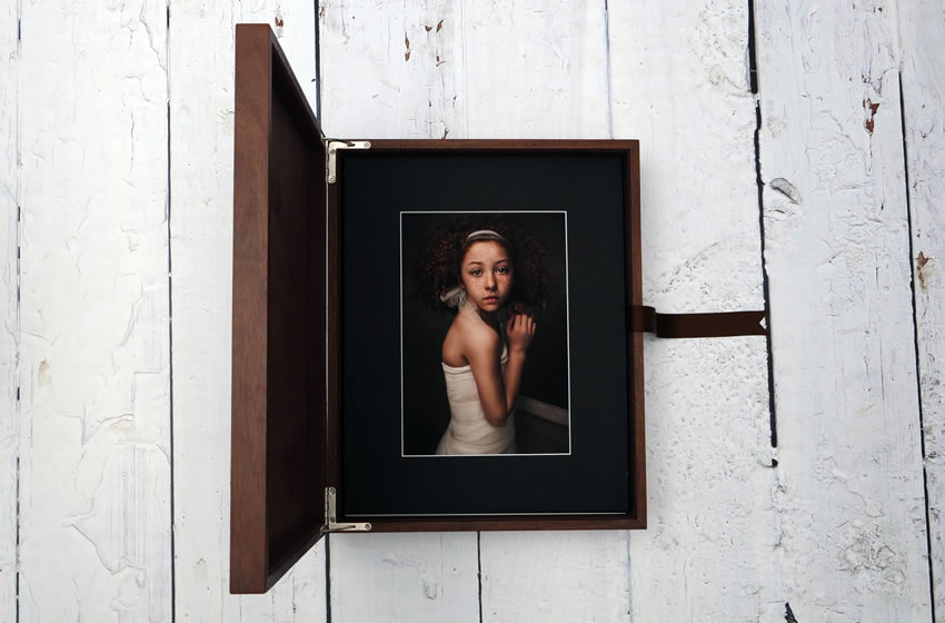 The Fine Art Mat has been designed to make it quick and easy to mat your fine art prints. One short side of the mat is left unsealed so you can simply lift up the front piece, position your print. Then you simply peel away the tape and seal the mat shut.