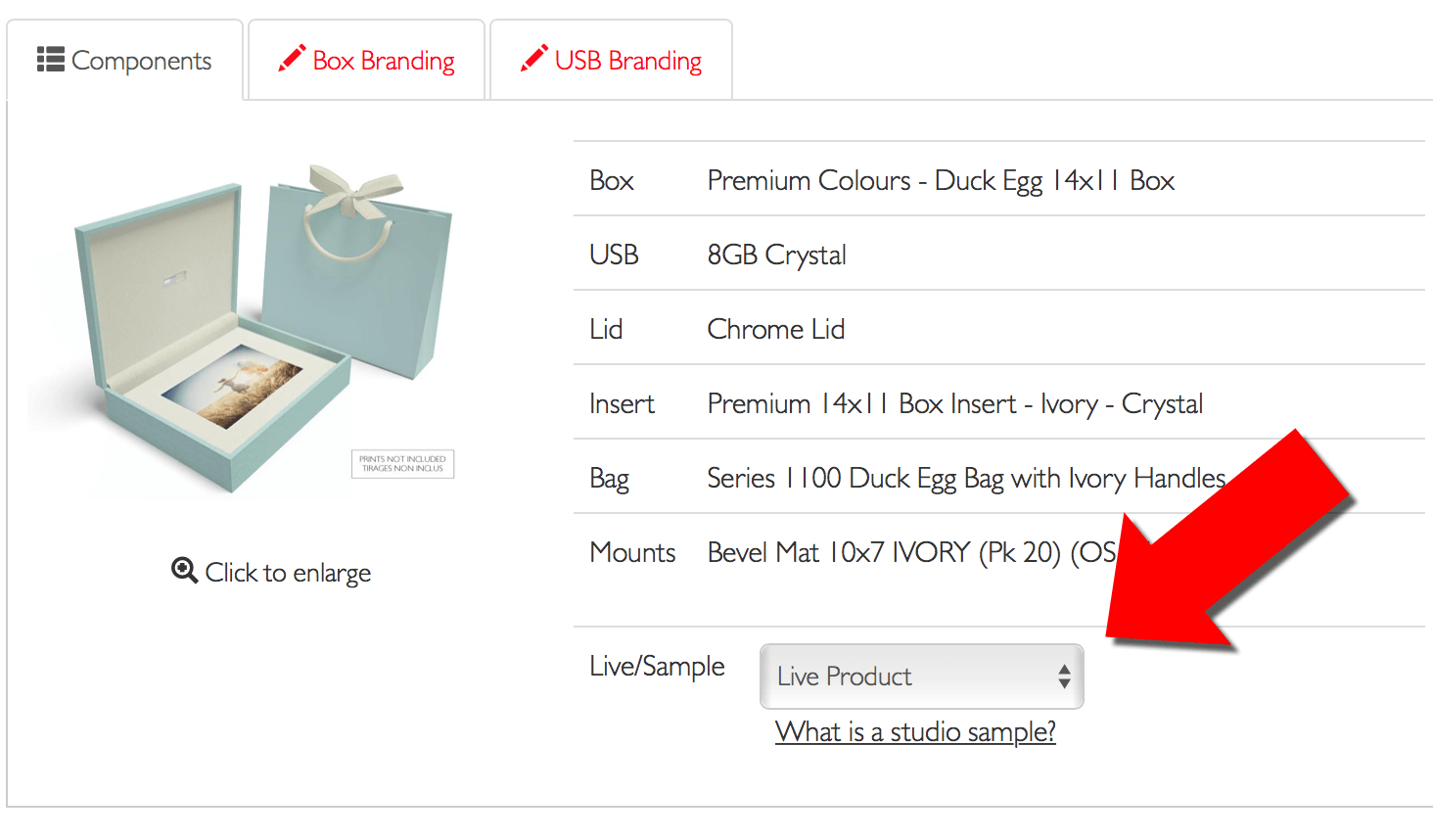 We want to help you get started which is why we reduce the cost of the product by 25% for your Studio Sample. In order to receive your studio sample discount, simply put a live product in your cart and choose 'Studio Sample' from the dropdown